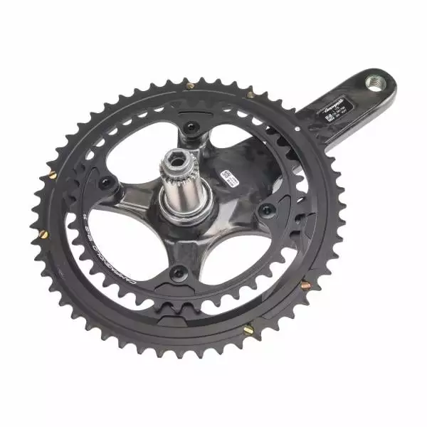 Pour toujours plus de performance, il doté d’un axe Ultra-Torque qui garantit un très bon transfert de puissance lorsqu’on appuie sur les pédales. Enfin, pour fixer les plateaux, Campagnolo a fait le choix d’utiliser huit vis afin d’avoir un ensemble rigide.