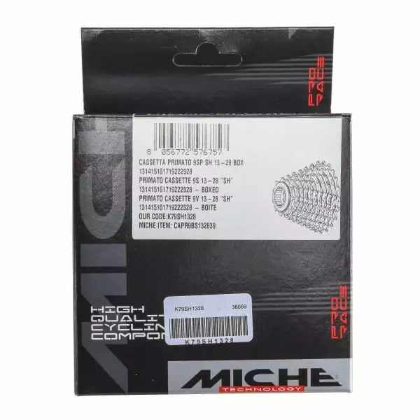 La cassette MICHE est compatible avec les roues-libres Shimano 9 vitesses. Elle est conçue avec des couronnes en acier chromé d’une belle longévité. Le contre-écrou de blocage est également en acier chromé.