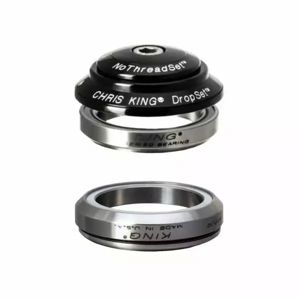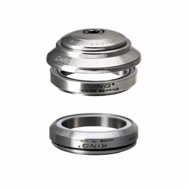Fabriqué aux États-Unis avec un extrême souci du détail, ce jeu de direction intégré est conçu pour les cadres ayant une douille de direction 1″1/8, avec un diamètre interne de 42 mm. Il combine des cuvettes en aluminium 6061 usiné CNC et des roulements étanches Hi Rolling en acier inoxydable.