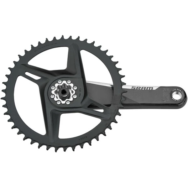 Tout comme la version double plateau, il possède des manivelles évidées en carbone pour une plus grande légèreté et un axe surdimensionné en aluminium procurant une meilleure rigidité. Il utilise une géométrie à étoile 4 branches, dont 2 qui sont allégées avec des ouvertures pour réduire davantage le poids du pédalier.
