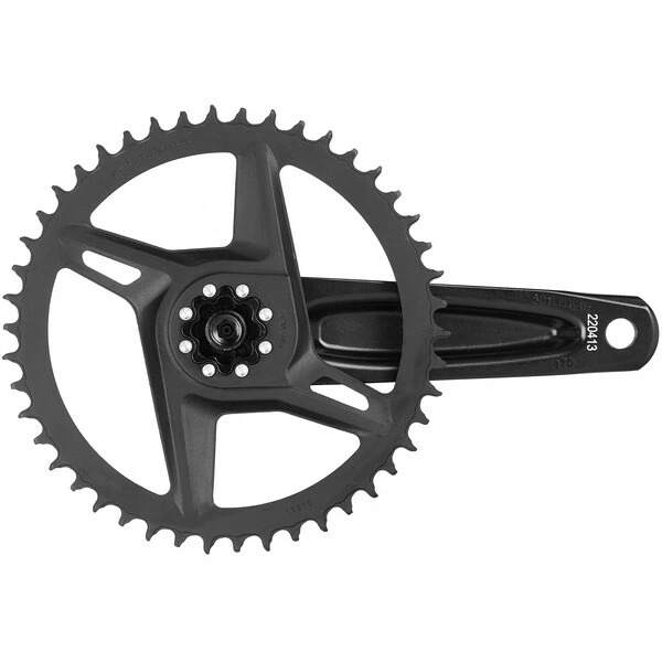 Ce pédalier reprend la fiabilité, l’esthétisme et les fonctionnalités du capteur de puissance intégré au pédalier, Quarq, et est plus abordable. L’unité DUB-PWR intégrée à l’axe mesure la puissance de la jambe gauche et calcule le total de watts.