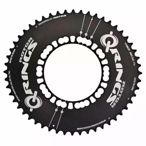 Le plateau extérieur ROTOR Q-Rings Aero Standard 110 mm pour pédalier compact est ovalisé et particulièrement aérodynamique. Il est notamment conçu pour être utilisé avec les étoiles Aero ou Flow de la marque et leur pénétration dans l’air exceptionnelle.