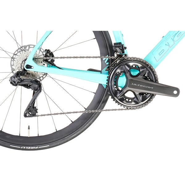Au niveau de l’équipement, il reçoit le groupe électrique sans fil Shimano Ultegra Di2 en 12 vitesses, modèle de précision et de fiabilité, tant au niveau des changements de vitesses que du freinage. Il est aussi doté de périphériques Reparto et des roues en aluminium légères Fulcrum Racing 400.