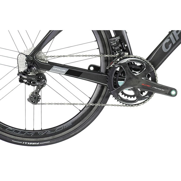 Ce The One embarque un groupe complet 2×12 vitesses électronique sans fil Campagnolo Super Record EPS permettant un changement de vitesse ultra fluide, rapide et d’une précision redoutabe. Il est accompagné du cintre intégré Deda Alanera en carbone rigide et aérodynamique tout en gardant un confort ergonomique. Pour des performances et des vitesses maximales en compétition, il est équipé de roues aérodynamiques Campagnolo Bora WTO en carbone légères, stables et précises.
