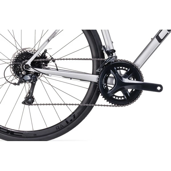 Le Cube Attain Pro est équipé d’une transmission Shimano Sora 9 vitesses avec un pédalier compact en 34/50 pour vous permettre de passer peut importe le profil qui se présente en face de vous. Les freins à disque TRP apportent une qualité de freinage quelles que soient les conditions climatiques.