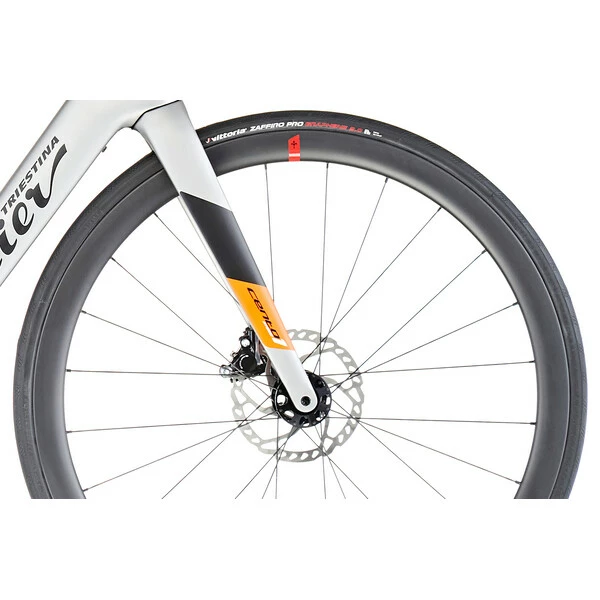 Au niveau de l’équipement, le Cento1 Hybrid reçoit un groupe Shimano 105 R7020, modèle de précision et de fiabilité, tant au niveau des changements de vitesses que du freinage. Les périphériques sont quant à eux signés FSA. Dans cette version Air38, il reçoit des roues en carbone Wilier NDR38 légères et précises pour des relances franches.
