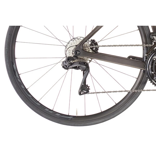 Ce modèle est ici équipé du groupe électronique Ultegra Di2 de Shimano. Un modèle de fiabilité qui ne demande qu’à avaler les kilomètres. Avec ses développements 2×12 vitesses, monté en 11/30 à l’arrière, il s’adaptera sans problème à tous les profils de sortie.