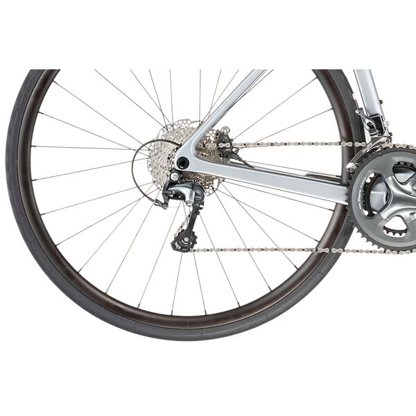 Ce modèle est ici équipé du groupe Tiagra de Shimano. Un modèle de fiabilité qui ne demande qu’à avaler les kilomètres. Avec ses développements 2×10 vitesses, monté en 11/34 à l’arrière, il s’adaptera sans problème à tous les profils de sortie.