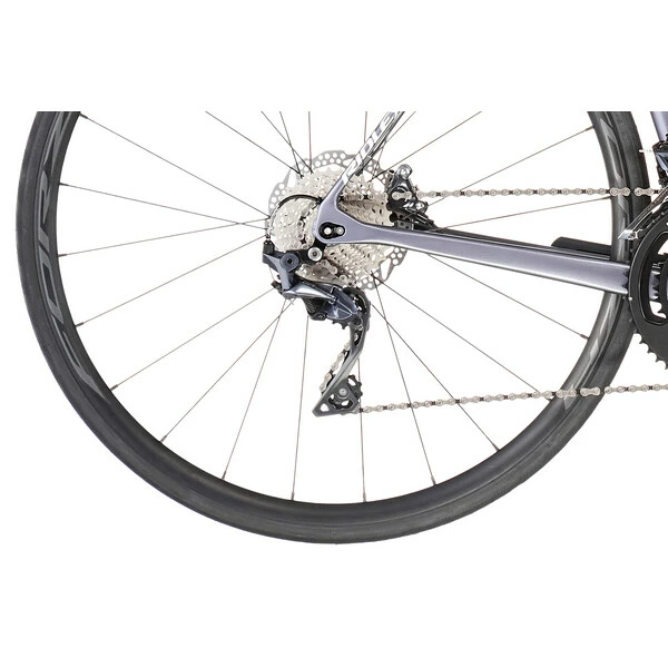 Reposant sur une stratification en fibres de carbone 24 tonnes, il est ainsi très confortable, avec une excellente absorption des chocs, tout en assurant un transfert de puissance optimal. Le tube de direction rigide et aérodynamique, associé à l’axe de pédalier solide et aux haubans légers et étroits lui confèrent non seulement un look séduisant, mais le rend également plus rapide. Le triangle arrière légèrement plus long augmente l’empattement du vélo, ce qui améliore la stabilité et le confort. Enfin, le profil unique en diamant des tubes crée des bords renforcés, ce qui donne un cadre robuste qui résiste mieux aux impacts.