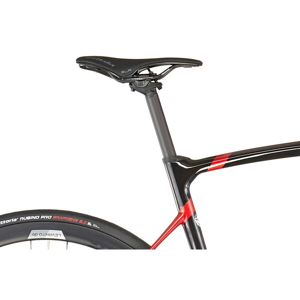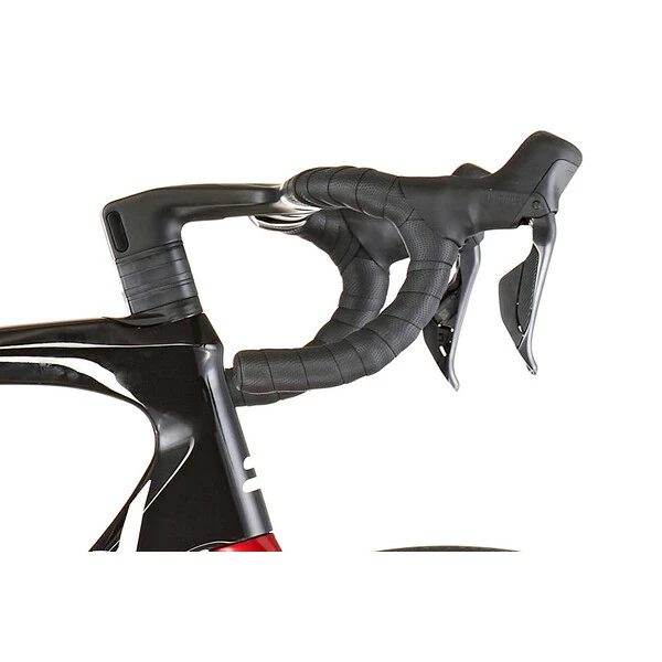 Reposant sur une stratification en fibres de carbone haut module 30 et 24 tonnes, il est ainsi très confortable, avec une excellente absorption des chocs, tout en assurant un transfert de puissance optimal. Le tube de direction rigide et aérodynamique, associé à l’axe de pédalier solide et aux haubans légers et étroits lui confèrent non seulement un look séduisant, mais le rend également plus rapide. Le triangle arrière légèrement plus long augmente l’empattement du vélo, ce qui améliore la stabilité et le confort. Enfin, le profil unique en diamant des tubes crée des bords renforcés, ce qui donne un cadre robuste qui résiste mieux aux impacts.