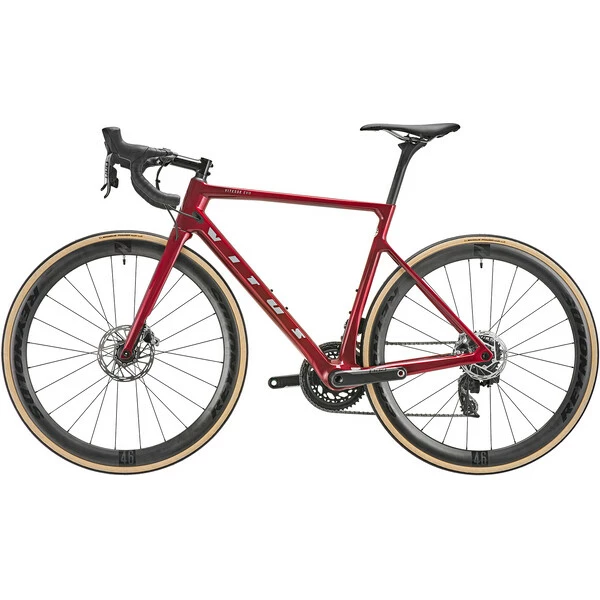 Côté équipement, on retrouve un groupe électronique 2×12 vitesses Sram Red eTap AXS haut de gamme. Garantissant un passage d’une extrême fluidité et précision, il vous permettra d’affronter tout type de relief et sera à l’aise sur le plat comme sur les parcours à fort dénivelé positif. Et pour un contrôle total du vélo, en descente ou par temps humide, les freins à disque hydrauliques Sram Red sont parfaits.
