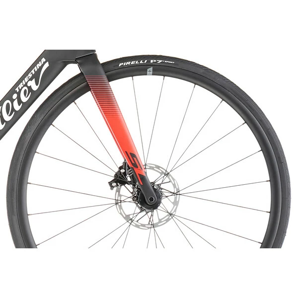 Équipé avec le groupe électronique Sram Rival eTap AXS 12 vitesses, il assure une transmission précise et fluide tout en proposant un freinage à disque idéal dans toutes les conditions climatiques.