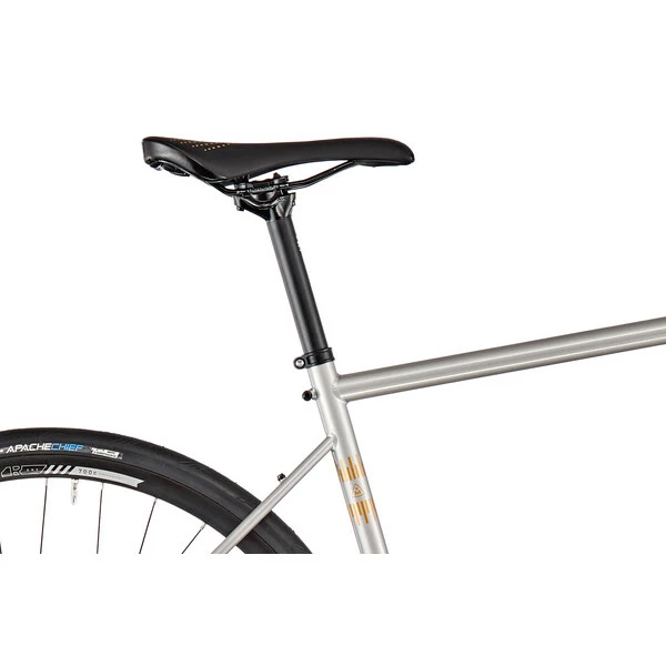 Le cadre du Nicasio est en acier chromoly, promettant une solidité à toute épreuve. Sa géométrie Beyond Road met l’accent sur le confort du cycliste : elle propose une position plutôt redressée, plus agréable sur les longues sorties. Ce cadre a surtout l’avantage de pouvoir s’adapter au terrain emprunté, avec des dégagements avant/arrière permettant de monter des pneus de 40 mm (roues 700c) ou de 47 mm de section (roues 650b). Il permet enfin le montage des indispensables garde-boue/porte-bagages pour le transformer en parfait commuter.