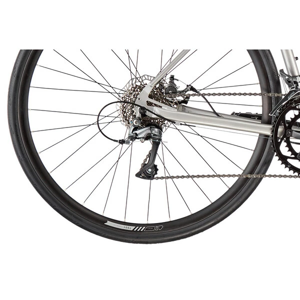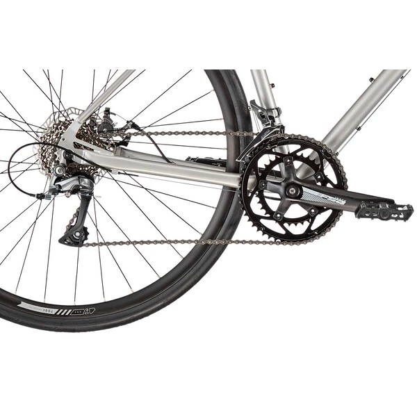 Côté équipement, ce vélo de gravel MARIN BIKES Nicasio propose une transmission 2 x 8 vitesses Shimano Claris et des freins à disque mécaniques Promax. Il est équipé d’origine de pneus polyvalent Schwalbe Spicer de 30 mm.