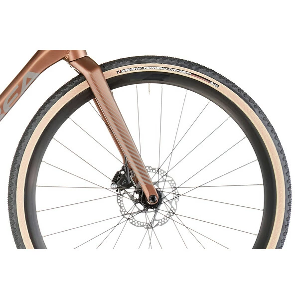 Le Terra peut être monté avec des pneus 700 x 45c pour la vitesse et l’efficacité sur les pistes, ou avec un modèle 650 x 2.1 pour un résistance ultime et confort de pointe si vous cherchez un peu plus de traction. Il est accompagné d’un cintre OC Gravel ergonomique qui permet de surélever les cocottes afin de relâcher le cou et les épaules et vous permettre de vous concentrer sur votre sortie.